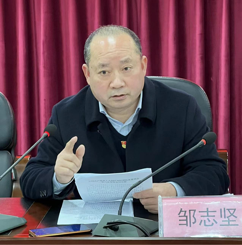 接着,邹志坚同志作主题为《坚持严的主基调不动摇 把全面从严治党向纵深推进 以优异成绩迎接党的二十大胜利召开》的纪检监察工作报告,全面回顾了2021年集团纪检监察工作开展情况,分析了当前党风廉政建设存在的主要问题,并明确2022年纪检监察重点工作任务:一是坚定不移加强党的政治建设,以“两个维护”的实际行动为党的二十大胜利召开提供坚强保障;二是持续提升监督质效,推动“两个责任”一体履行;三是发挥专责监督作用,聚焦监督首责,做实做细日常监督;四是坚持人民至上,深入惩治群众身边腐败问题和不正之风;五是强化廉洁教育,筑牢拒腐防变思想底线。