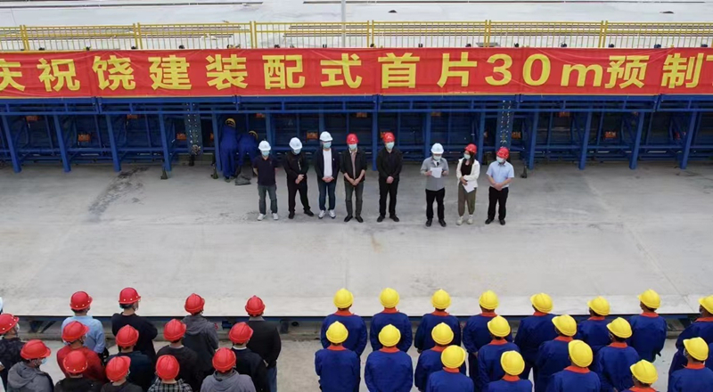 4月28日下午14时30分,饶建装配式基地现场传来喜讯。历时3个多小时,首件T梁顺利浇筑完成,标志着饶建装配式基地预制T梁生产线开始生产运营。交建集团党委副书记、总经理江宇,总工程师詹钢洪莅临项目现场参加仪式。